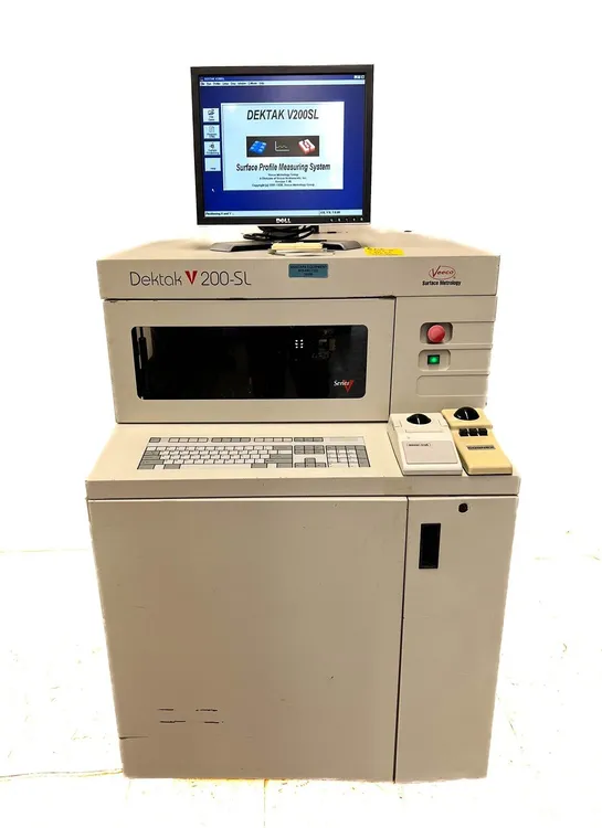 <div style="color: rgb(51, 51, 51); font-family: sans-serif, Arial, Verdana, "Trebuchet MS"; font-size: 13px; font-style: normal; font-variant-ligatures: normal; font-variant-caps: normal; letter-spacing: normal; text-transform: none; white-space: normal; word-spacing: 0px; -webkit-text-stroke-width: 0px; font-weight: 400; orphans: 2; widows: 2; text-indent: 0px; text-decoration-thickness: initial; text-decoration-style: initial; text-decoration-color: initial;" align="left"><br><span style="font-size: 20px; font-family: "times new roman", times, serif; color: rgb(0,0,0)">Manufacturer: Veeco Surface Metrology</span><br><span style="font-size: 20px; font-family: "times new roman", times, serif; color: rgb(0,0,0)">Model: V200-SL</span></div><div style="color: rgb(51, 51, 51); font-family: sans-serif, Arial, Verdana, "Trebuchet MS"; font-size: 13px; font-style: normal; font-variant-ligatures: normal; font-variant-caps: normal; letter-spacing: normal; text-transform: none; white-space: normal; word-spacing: 0px; -webkit-text-stroke-width: 0px; font-weight: 400; orphans: 2; widows: 2; text-indent: 0px; text-decoration-thickness: initial; text-decoration-style: initial; text-decoration-color: initial;" align="left"><span style="font-size: 20px; font-family: "times new roman", times, serif; color: rgb(0,0,0)">Includes Software as shown</span></div><div style="color: rgb(51, 51, 51); font-family: sans-serif, Arial, Verdana, "Trebuchet MS"; font-size: 13px; font-style: normal; font-variant-ligatures: normal; font-variant-caps: normal; letter-spacing: normal; text-transform: none; white-space: normal; word-spacing: 0px; -webkit-text-stroke-width: 0px; font-weight: 400; orphans: 2; widows: 2; text-indent: 0px; text-decoration-thickness: initial; text-decoration-style: initial; text-decoration-color: initial;" align="left"><span style="font-size: 20px; font-family: "times new roman", times, serif; color: rgb(0,0,0)">Semiconductor Wafer Profiler</span></div>