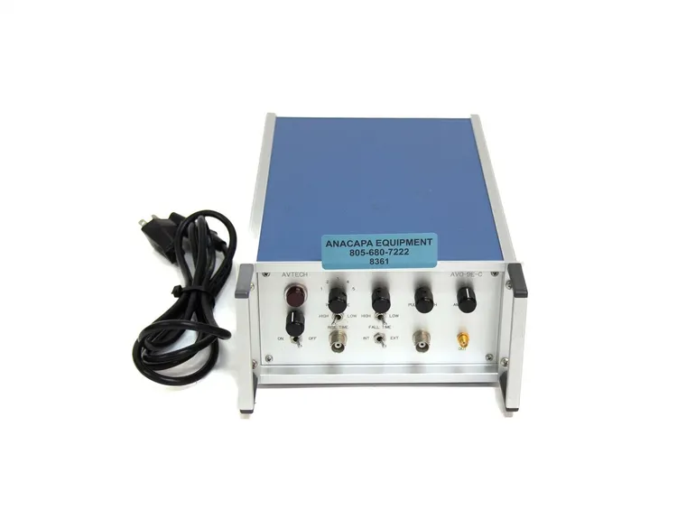 <center><span style='font-size: 24px; font-family: "times new roman", times, serif; color: rgb(39,87,141)'><b>Avtech AVO-9E-C AVO-9E-C-TRF-MI-MV-P-PN Laser Diode Driver (Pulsed Voltage) (8361)I<br /></b></span><font color="#27578d" face="times new roman, times, serif"><b>In good cosmetic condition. This unit is used, it powers on and no further testing could be done. See pictures for more detail.</b></font></center></td></tr></tbody></table>