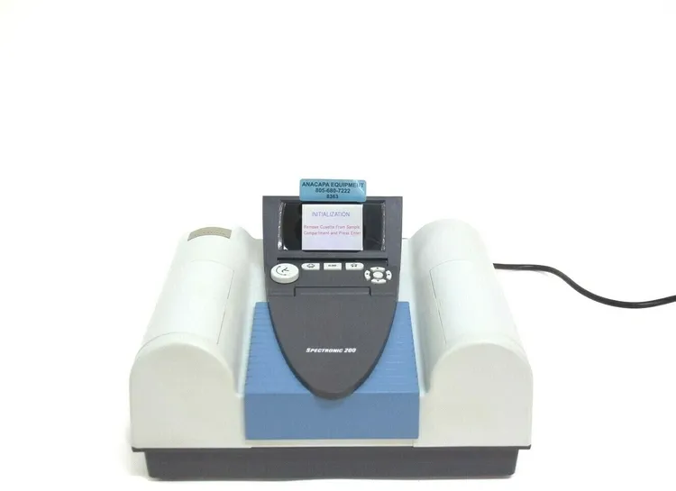 <p><span style="color: rgb(0,0,0)"><span style="font-size: 20px"><span style="font-family: "times new roman", times, serif"><strong><u>Manufacturer</u></strong>: Thermo Scientific<br><strong><u>Model</u></strong>: Spectronic 2000</span></span></span></p><p><span style="color: rgb(0, 0, 0);"><span style="font-size: 20px"><span style="font-family: "times new roman", times, serif"><u style="font-weight: bold;">Part Number</u>: 222-265700<br><br><strong><u>Includes</u></strong>:<br>Power Cable<br>Spectronic 200 unit<br>New, Old Stock, International Light Lamp for Spectronic 200 (quantity: 2) 714-039400</span></span></span></p><p><span style="color: rgb(0, 0, 0);"><span style="font-size: 20px"><span style="font-family: "times new roman", times, serif"><br><strong><u>Specifications</u></strong>: (<strong>These specifications were taken from an online user manual</strong>)<br>Spectral Bandwith: = 4 nm<br>Light Source: Tungsten-halogen lamp<br>Detector: CCD<br>Scan Ordinate Modes: %T, Abs<br>Wavelength range: 340-100 nm<br>Monochromator: 600 lines/mm holographic grating<br>Wavelength readabilty: 1 nm<br>Wavelength Accuracy: ± 2 nm<br>Wavelength Reproducibility: ± 1 nm<br>Stray light: < 0.2 %T at 400 nm<br>Photometric range: <br> Absorbance: -0.1 to 2.5 Abs<br> % Transmittance: -0.1 to 100 %T<br>Photometric Accuracy:<br> ±0.01 Abs (±1 %T) at 1A@590nm<br>Display: Blacklit color LCD display <br><br><strong><u>Dimensions</u></strong>:<br>Actual Dimensions (LxWxH): 12x15x7"<br>Actual Weight: 12 lbs</span></span></span><font color="#000000" face="times new roman, times, serif"><span style="font-size: 20px"> <br><br></span></font><br></p>