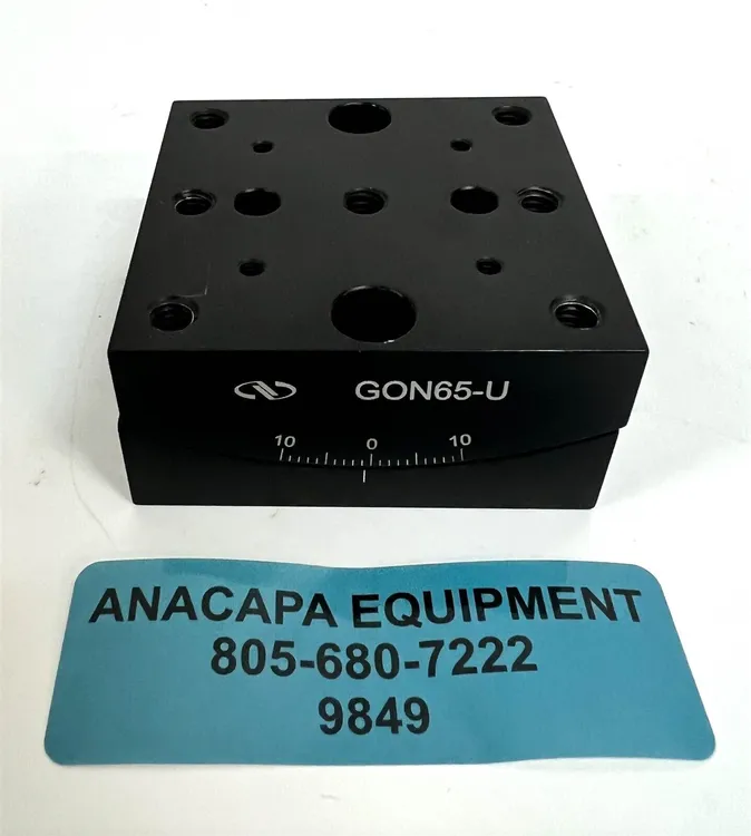 <p style='font-size: 13px; font-family: sans-serif, Arial, Verdana, "Trebuchet MS"; white-space: normal; word-spacing: 0px; text-transform: none; font-weight: 400; color: rgb(51,51,51); font-style: normal; orphans: 2; widows: 2; letter-spacing: normal; text-indent: 0px; -webkit-text-stroke-width: 0px; text-decoration-thickness: initial; text-decoration-style: initial; text-decoration-color: initial; font-variant-ligatures: normal; font-variant-caps: normal'><span style='font-size: 20px; font-family: "times new roman", times, serif; color: rgb(0,0,0)'>Manufacturer: Newport</span><br /><span style='font-size: 20px; font-family: "times new roman", times, serif; color: rgb(0,0,0)'>Model: GON65-U<br /><br /><span style='font-size: 20px; font-family: "times new roman", times, serif; white-space: normal; word-spacing: 0px; text-transform: none; float: none; font-weight: 400; color: rgb(0,0,0); font-style: normal; orphans: 2; widows: 2; display: inline !important; letter-spacing: normal; background-color: rgb(255,255,255); text-indent: 0px; -webkit-text-stroke-width: 0px; text-decoration-thickness: initial; text-decoration-style: initial; text-decoration-color: initial; font-variant-ligatures: normal; font-variant-caps: normal'>Specifications: The following specifications were taken from an online user manual or manufacturer's website and may not be specific to this item, please look at pictures carefully for items included and specifics. These specifications are for reference only.</span><br /><br /><br /><span style='font-size: 20px; font-family: "times new roman", times, serif; white-space: normal; word-spacing: 0px; text-transform: none; font-weight: 400; color: rgb(0,0,0); font-style: normal; orphans: 2; widows: 2; letter-spacing: normal; text-indent: 0px; -webkit-text-stroke-width: 0px; text-decoration-thickness: initial; text-decoration-style: initial; text-decoration-color: initial; font-variant-ligatures: normal; font-variant-caps: normal'>The GON65-U Upper Goniometric stage rotates an object about an axis, which is unobstructed by the stage itself, located over the center of the top platform. GON Series Goniometric Rotation Stages use an actuator-driven precision dovetail slide and are spring-loaded to reduce the backlash commonly found in similar worm-gear driven stages. The GON65-U upper stage has ±10° of rotational motion when used with a 25 mm travel actuator, and ±5° of motion when used with a 13 mm travel actuator. The motion on goniometric stages can be securely locked using a hex screw on the side of the stage.<br /><br />Dimensions<br />Actual Dimensions:2.56 X 2.56 X 1.18 IN<br />Actual Weight: 3 lbs</span><span style='font-size: 20px; font-family: "times new roman", times, serif; white-space: normal; word-spacing: 0px; text-transform: none; font-weight: 400; color: rgb(0,0,0); font-style: normal; orphans: 2; widows: 2; letter-spacing: normal; text-indent: 0px; -webkit-text-stroke-width: 0px; text-decoration-thickness: initial; text-decoration-style: initial; text-decoration-color: initial; font-variant-ligatures: normal; font-variant-caps: normal'><br /></span></span><span style='font-size: 20px; font-family: "times new roman", times, serif; color: rgb(0,0,0)'></span><br /></p>