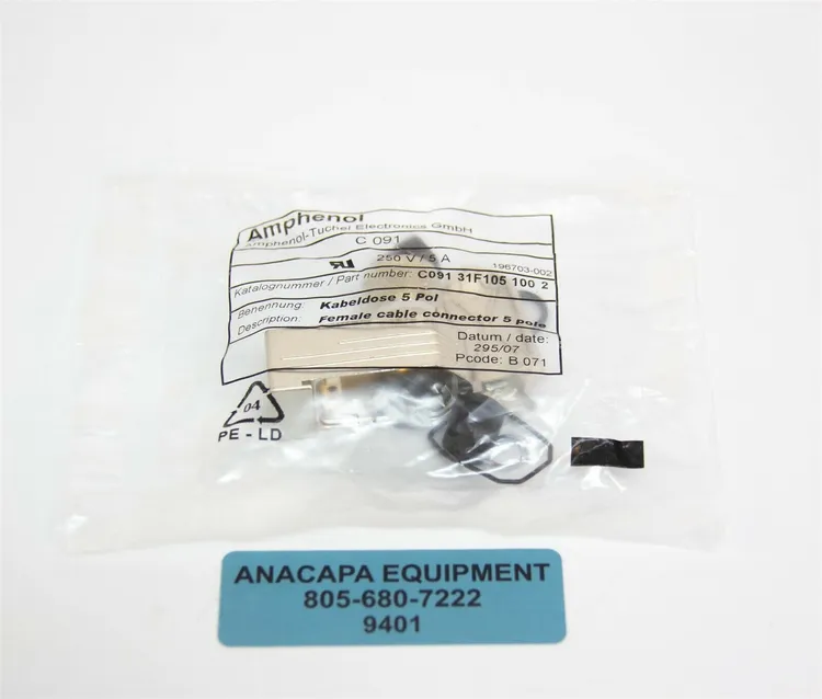 <center><span style="font-family: "times new roman", times, serif"><span style="color: rgb(39,87,141)"><span style="font-size: 24px"><strong>Amphenol Tuchel C091 31F105 100 2 Female Cable Connector Plug 5 Pole 250V/5A Lot of 9 (9401)K<br></strong></span><span style="font-size: 14px"><strong>New old stock. In original packaging. Lot of 9 total. See pictures for more detail.</strong></span></span></span><br></center></td></tr></tbody></table>