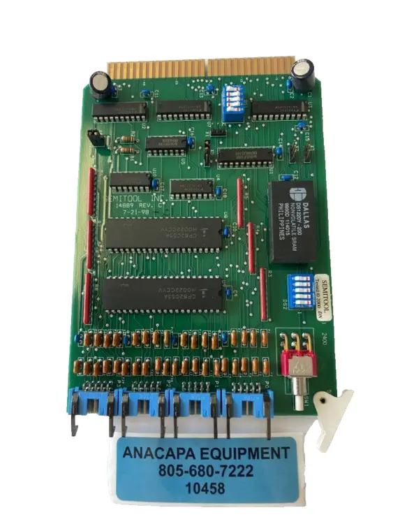 <style>img{max-width:100%}</style><meta name="viewport" content="width=device-width, initial-scale=1.0"/><!-- Begin Description --><div id="tds-mobile-description" vocab="https://schema.org/" typeof="Product" style="display: none"><span property="description">This Semitool 14889 Rev C Analog Control Board is from an Equinox Spray Etcher and is in good cosmetic condition. It is sold as-is with a 30-day return policy. Please note that we do not ship internationally. Buyer assumes risk of quality. Perfect for your PCB needs!</span></div><meta name="keywords" content="Semitool analog control board, Equinox spray etcher parts, used PCB for Semitool, analog control board 14889 Rev C, semiconductor manufacturing equipment, replacement control board for etcher, Semitool 14889-01-0250, printed circuit board for semiconductor, used circuit board for etcher, semiconductor equipment parts"><meta name="description" content=""><meta name='viewport' content='width=device-width'><style>img{max-width:100%}</style><STYLE> a.imagelink {color:#0000FF;} a:hover.imagelink {color:#0000FF;} a:visited.imagelink {color:#800080;} a.imagelink img.auctionimage { border: 2px solid #0000FF; } a:visited.imagelink img.auctionimage { border: 2px solid #800080; } </STYLE><table width='95%' border=0 align=center class='acttbl'>